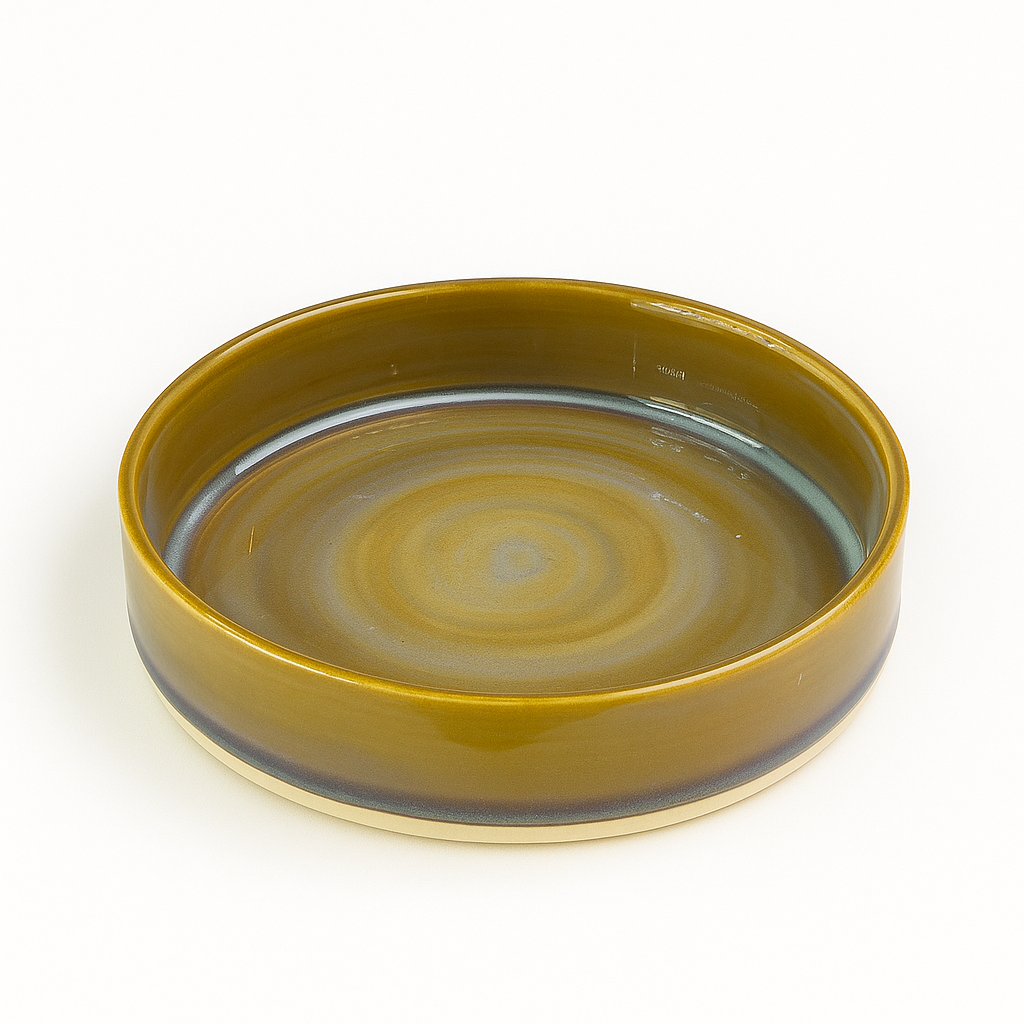 Her tabak özenle elde şekillendirilmiş, pürüzsüz sır yüzeyi ve sade formuyla zamansız bir estetik taşır. Renk geçişleri ve doğal doku farklılıkları sayesinde her parça kendine özgüdür. Günlük kullanımda olduğu kadar şık sofralarda da zarif bir tamamlayıcıdır.